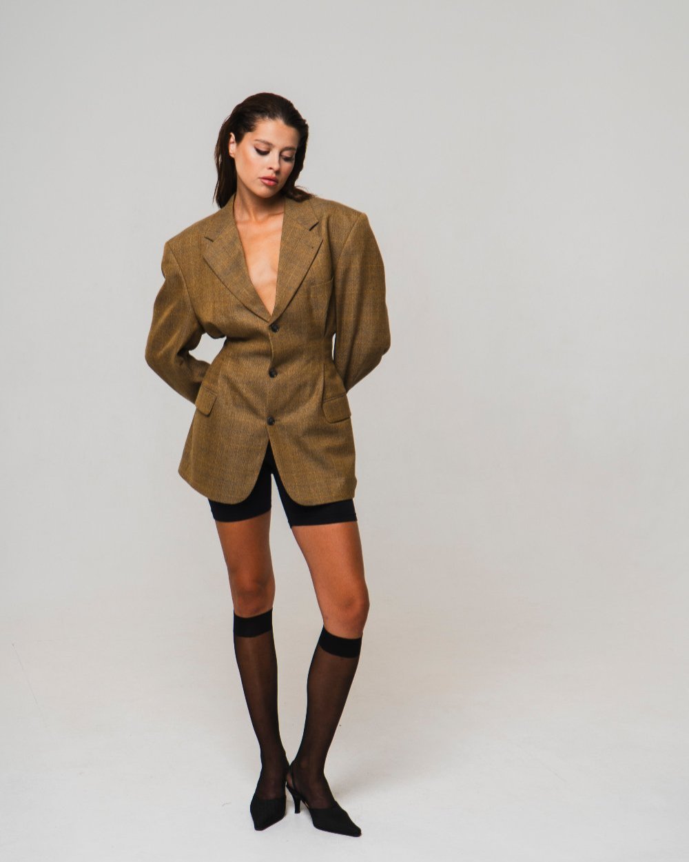 UPCYCLED FITTED CREASED JACKET with a man's shoulder