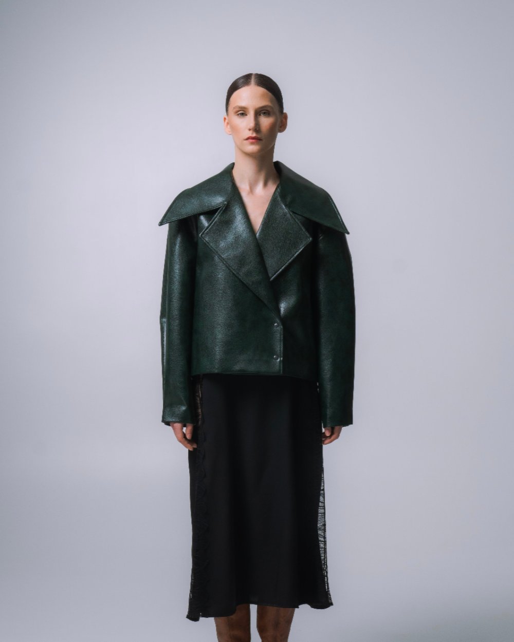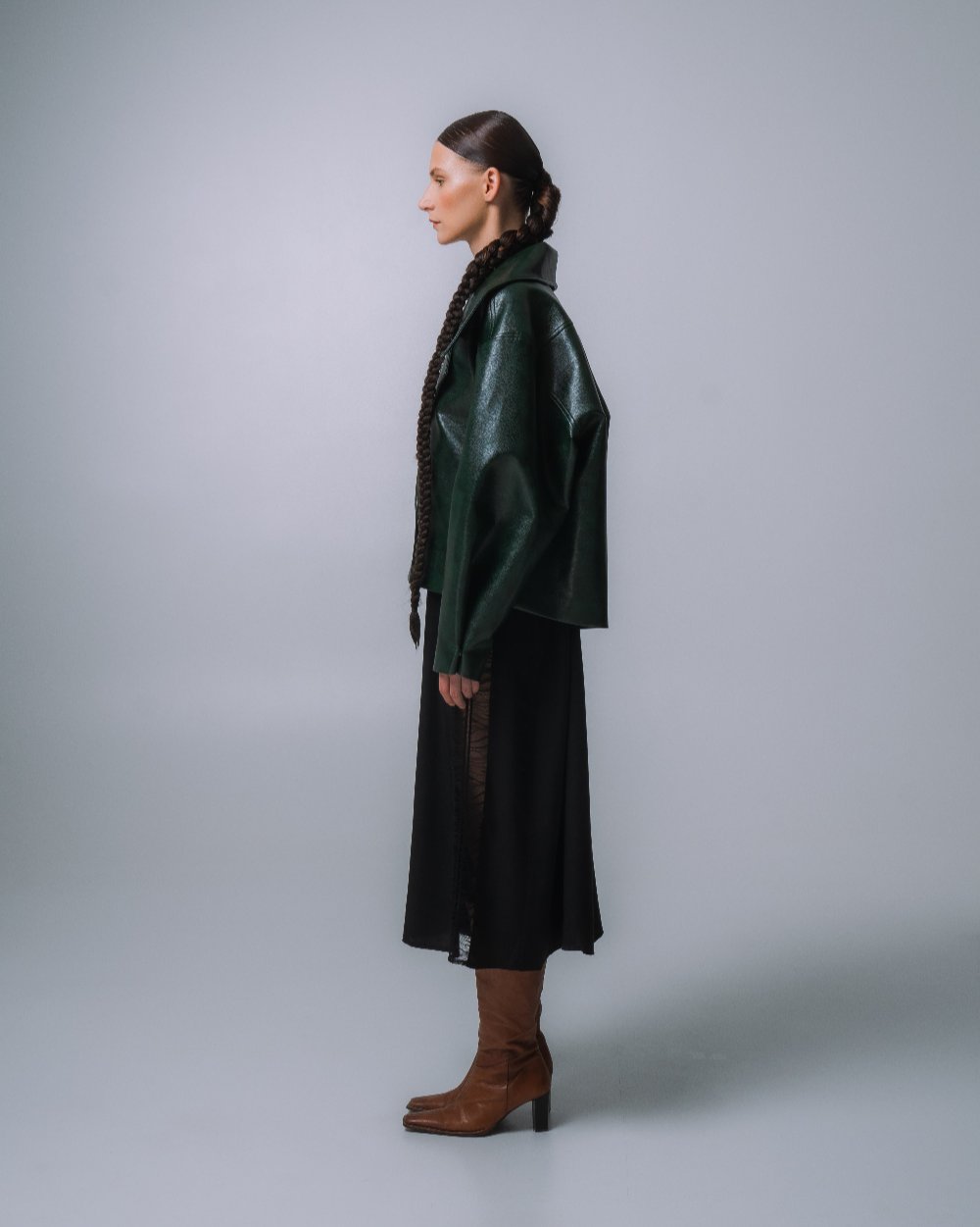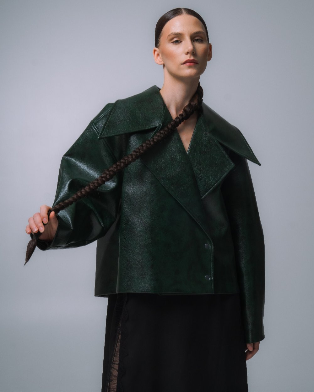 ЖАКЕТ З ЕКОШКІРИ СМАРАГДОВИЙ
